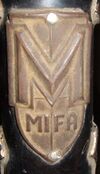 | [[Datei:Mifa Emblem 1954 emailliert Messing.JPG|100px|thumb|center]] | | [[Datei:Mifa Emblem 1954 emailliert Messing.JPG|100px|thumb|center]] | ||