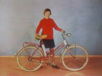 - Stahlrohrrahmen mit Außenmuffen, Oberrohr gebogen, Unterrohr gerade, Rahmenhöhe 44 cm - gekröpfter Hinterbau, Sportausfallenden nach vorn - Halterung für Dynamo an der Gabel angelötet - am Sattelrohr angelötete Halterung für die Luftpumpe - Keiltretlager Thompson-Ausführung, Kettenblatt mit 40 Zähnen - polierte Aluminiumfelgen 24", Flügelmuttern - Bereifung 24"x1 3/4" - vorn Stempelbremse mit Bowdenzug - hinten Freilaufnabe mit Rücktrittbremse, Zahnkranz mit 20 Zähnen - Sportlenker ohne Vorbau - polierte Leichtmetallschutzbleche oder farbig lackierte und weiß linierte Stahlschutzbleche, - Zubehör: Kettenschutz, Kleidernetz, Luftpumpe, Werkzeugtasche