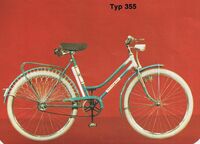 Das hier beschriebene Modell 355 war die Mädchenausführung des Modells 305. Frühe Katalogbilder zeigen das Fahrrad mit einem Dynamoscheinwerfer und einem Lackierungsschema, das dem der Tourenmodelle ähnlich war. Etwa 1965 änderten sich Lackierungsschema und Rahmendekor analog den Tourenrädern. Bei den Schutzblechen handelte es sich entweder um polierte Aluminiumschutzbleche oder um lackierte und weiß linierte Stahlschutzbleche, denn beide Ausstattungsvarianten sind bekannt.