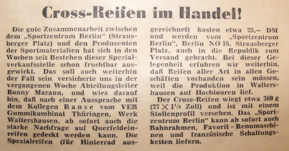 | 23:36, 18. Mai 2022 | Artikel Crossreifen im Handel Radsportwoche Januar 1959.jpg (Datei) | 132 KB | == Beschreibung == Importing file | 1 | |